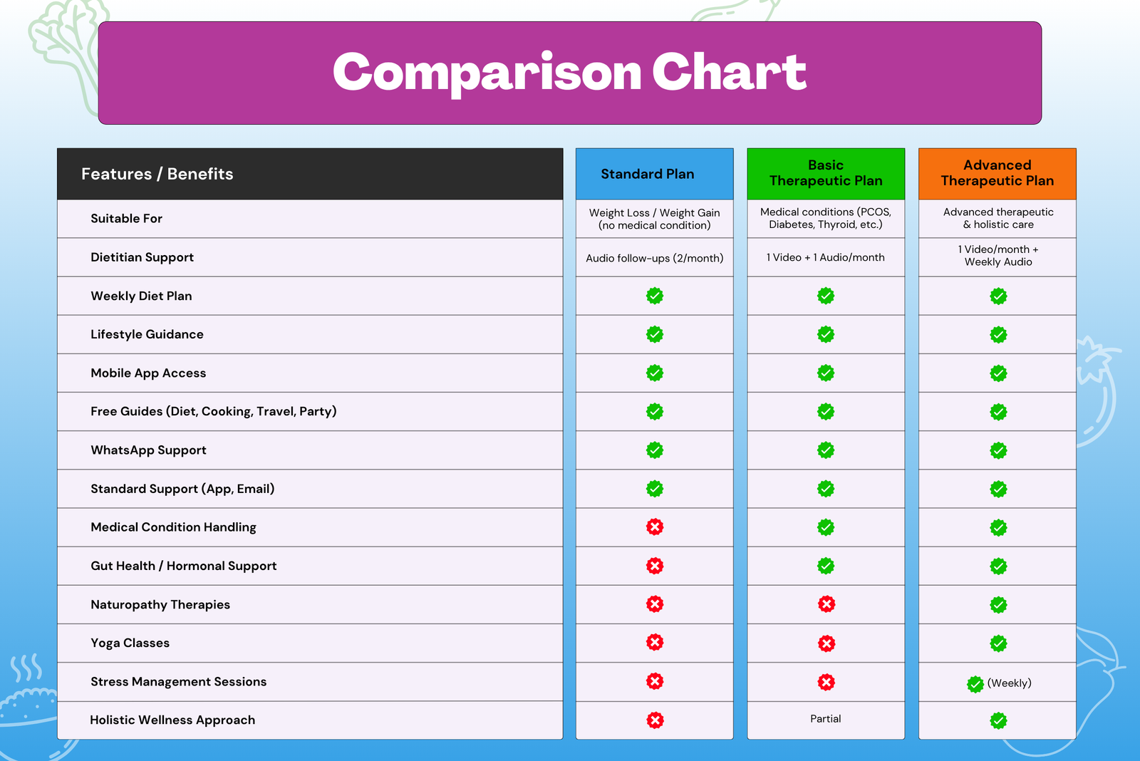 - Weekly customized diet plan